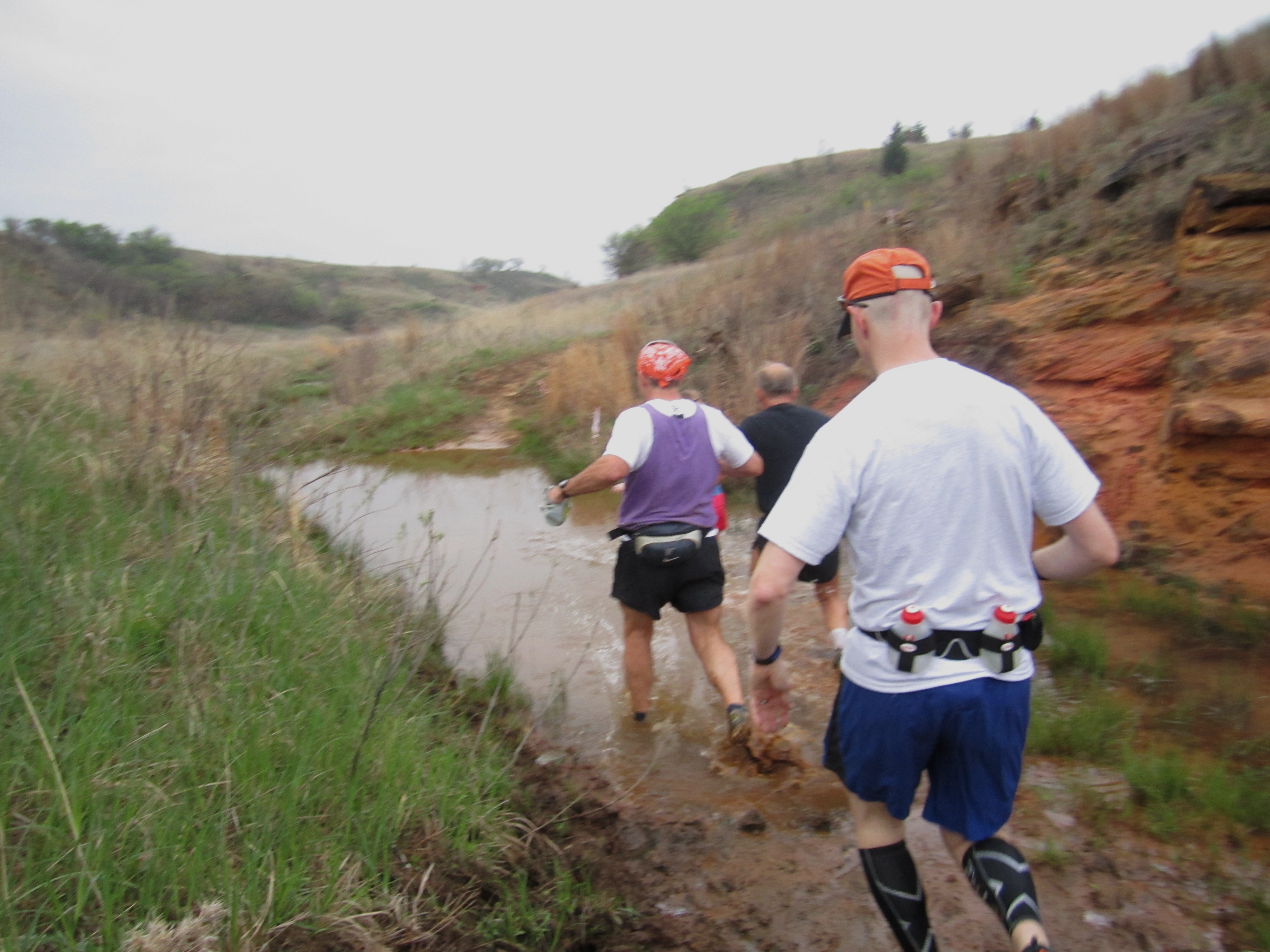I plodded through the next eight miles, up and down bluffs, through open fields and across creeks, and trotted into the manned aid station at Gate 6 (13.24 miles) in about 2:27. On a normal course, that pace might be fine. At Rockin’ K, it was irresponsible.