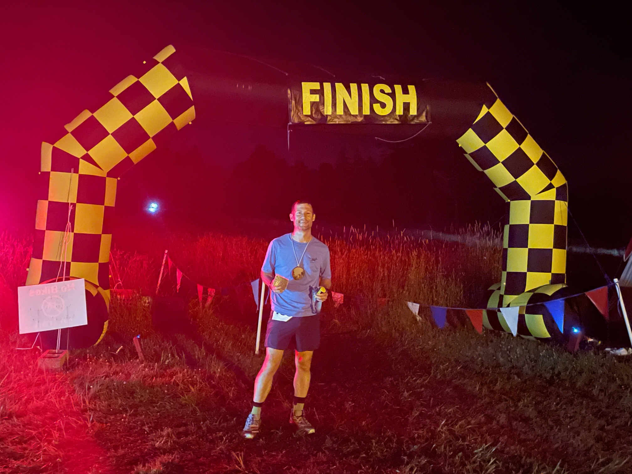 I marched up the first hill, briskly hiked the flats and gradual decline that took me to the final hill. I hiked up it with purpose, and upon cresting the top I broke out into a trot. I ran past the cross-country ski storage shed and around the bend to where the meadow and the lights of camp appeared in the distance under a clear, star-speckled sky. I picked up the pace with each stride and broke into what felt like a sprint as I entered the meadow with a tenth of a mile to go. My eyes watered as the glowing red numbers of the official clock drew closer. I’d waited an extra year for this moment, applied lessons learned from 2023, and forced myself to be patient and disciplined for so many hours to reach this moment. I was tired of waiting, and my legs brought me home strong.