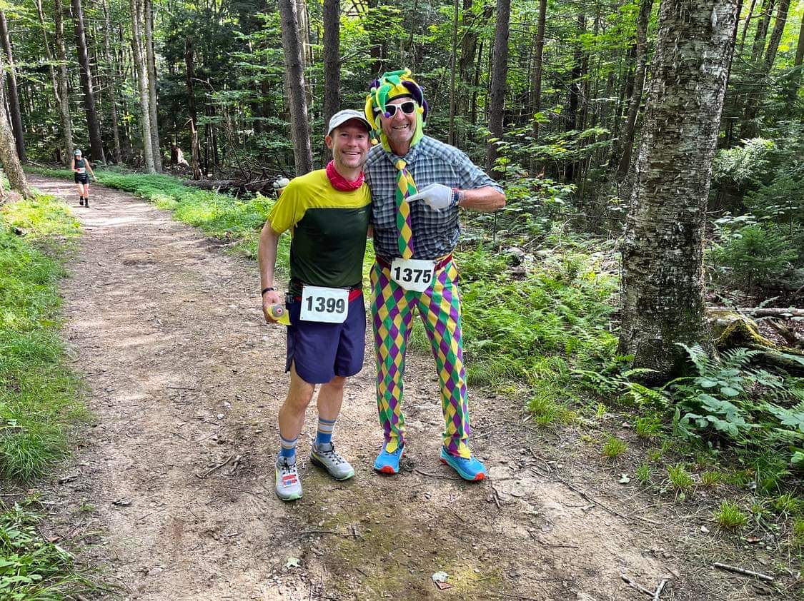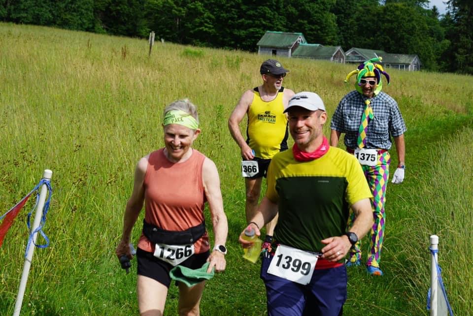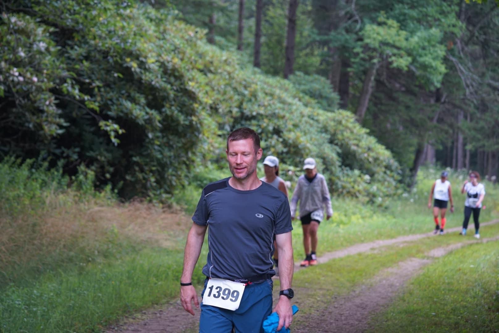 I first caught up with Alex Cabrera, who had ended his 72-hour race early with 108.3 miles on his legs. After a few minutes of chatting, his wife, Amanda, raced through the meadow and finished her first ultra with a 51.3-mile effort. Alex’s brother also completed his first ultra at Notchview this year, putting up 83.6 miles in the 48-hour race. I also caught up with a few of the folks who’d offered me pre-race encouragement and support throughout, Tiffany Fischer, Rebecca Gonzalez-Kreisberg, Mark and Alex Bancroft, and George and Ann Alexion. I caught up with Christine Da Silva as she finished her race – she’d been on the loop for some late-night miles as I was finishing the night before. And I caught up with Race Director Benn Griffin–the mastermind of this event–who was pulling hard for me throughout.